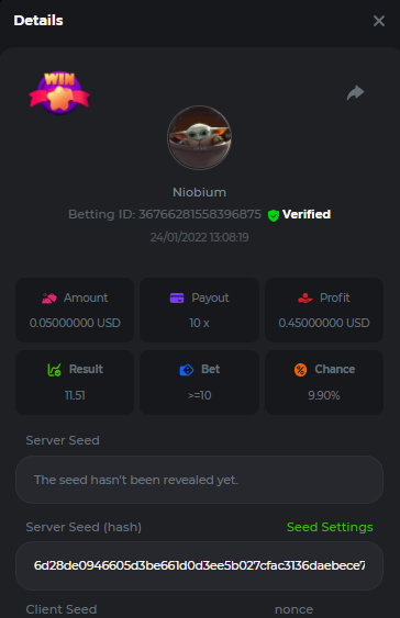 $1k Prestige Crash & Limbo Challenge #16 Aloha, BC players! Get ready to blast off into space, this week we will have the challenge in two exclusive in-house games, with a total prize pool of $1,000. The Top 15 participants who reach the highest payouts combined will split a share of the prize pool, may the force be with you! What's the Challenge? Win the highest possible multiplier in two in-house games, Crash & Limbo. The highest multiplier of each game will be added together and counted as total points. If a player submits more than 1 entry for the same game, only the highest multiplier will count. If there is a tie, the participant with the higher average bet amount (in USD) shall be the winner Minimum VIP There's no minimum VIP level Minimum Payout Minimum payout to qualify is 10x Minimum Bet Size $0.05 USD equivalent Eligible Coins All coins are eligible (excepting JB) Available Prizes 1st Place....... $400 2nd Place..... $200 3rd Place...... $100 4th Place......$60 5th Place......$40 6th-15th.........$20 How to Enter To enter, copy the bet ID of the bet you'd like to submit. Once you've copied it, post it as a reply to this thread like so: Betting ID: 36766281558397112 In the same post, upload a screenshot of your win by clicking the game ID WITH VIEW IN USD mode ENABLED (accessible at the bottom of dropdown menu for your wallet up top. This way, we can ensure that your bet indeed met the minimum requirement at the time of placing it: Betting ID: 36766281558397112 Please combine all of your hits together in a SINGLE post. Edit your existing post for additional hits, don't create a new post. Bets must be posted within 24 hours of placing bet in order to keep things fair for everyone. Bets must be made during the specified time window stated above. This thread will lock automatically when the time period is over. One (1) entry per household. Anyone found attempting to win multiple prizes will be disqualified from this challenge as well as all future challenges. Failure to follow instructions will result in your submission being null and void. By entering this challenge, you acknowledge that BC.Game has the final decision on results and placement. Payouts will be made within 72 hours of challenge completion, please be patient, we promise you that we haven't forgotten. We check and double check to make sure the rightful winners receive their prize. Prizes will be paid out in BCD. Best of luck playing!