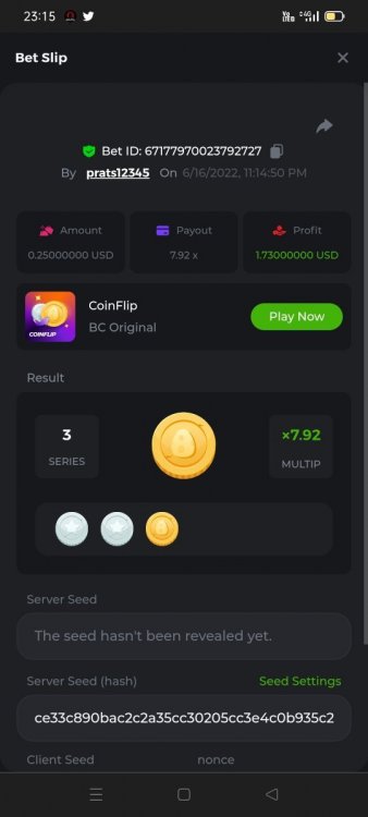 https://bc.game/sd/?sd=10KZ73TY38IHOZ Just to make it clear regarding the Bet amount which is 0.20$ posting a full screenshot of the same below: