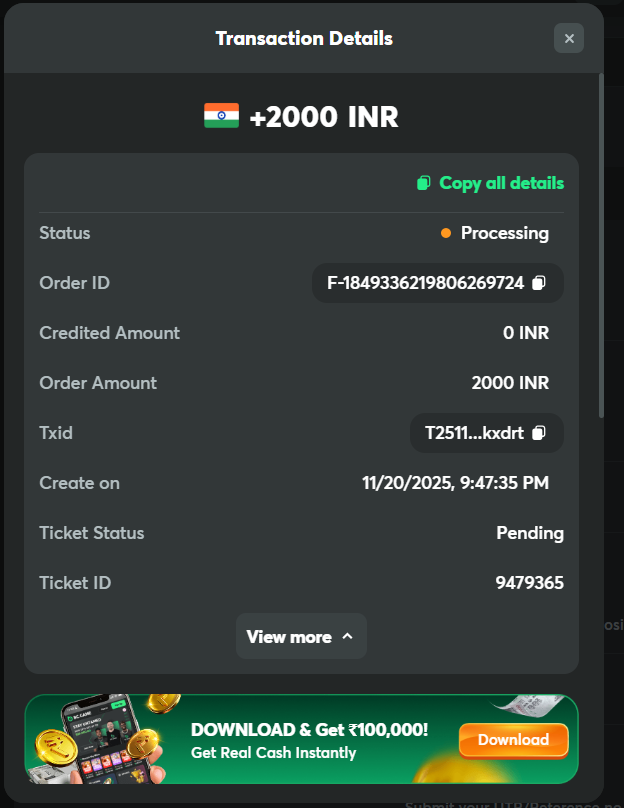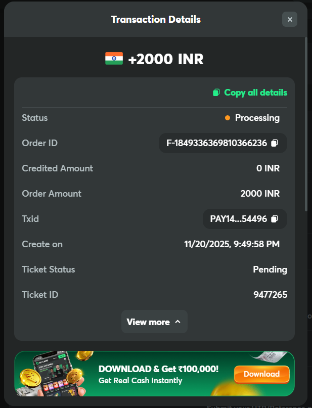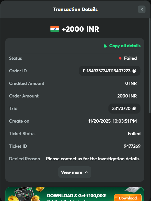 Also, I made three deposits on 20.11.2025 (F-1849337243113407223, F-1849336369810366236 & F-1849336219806269724), but the amount has not been added to the wallet yet. I have been requesting customer service to look into it and do the needful where as no positive feedback from them.