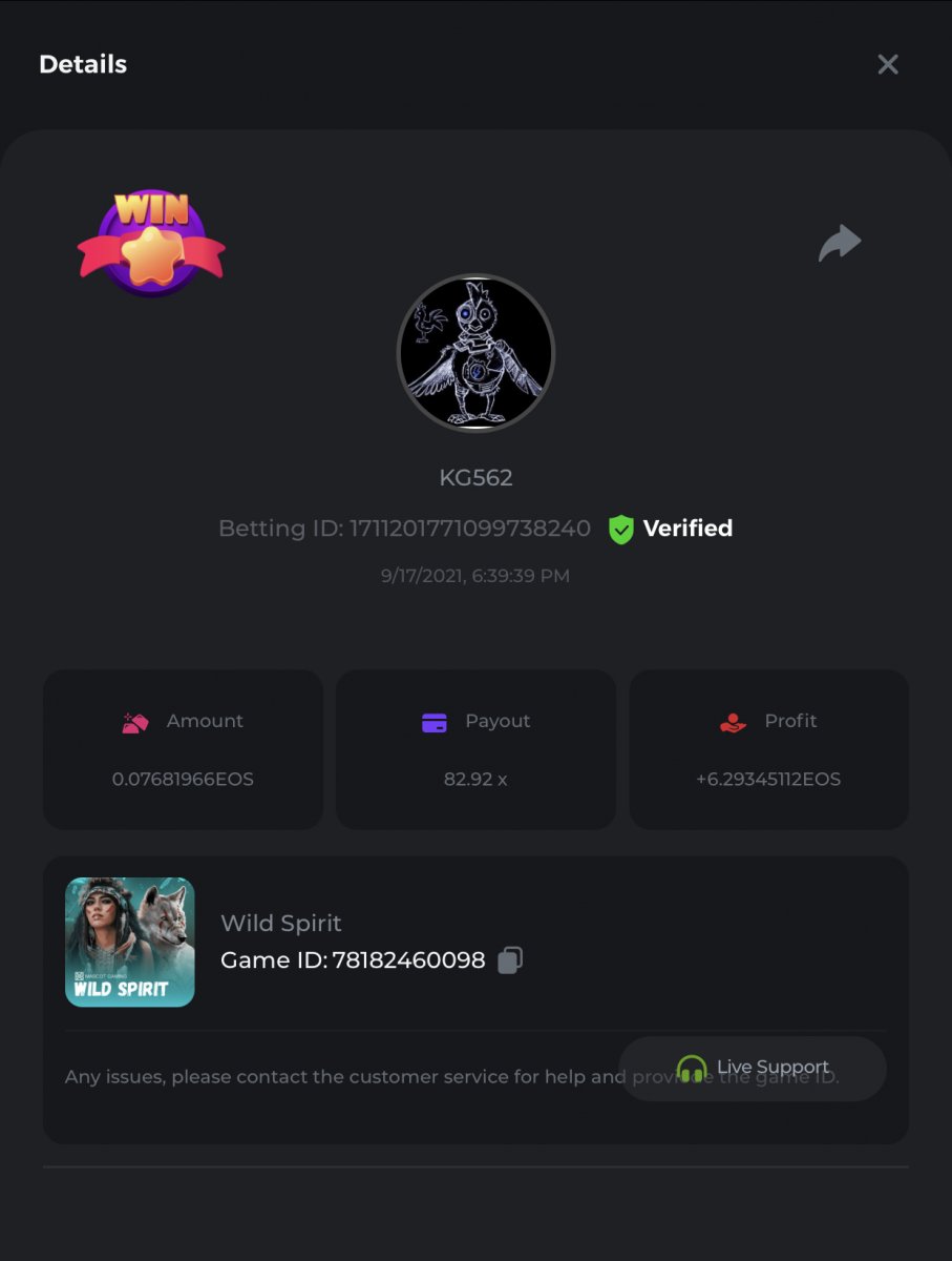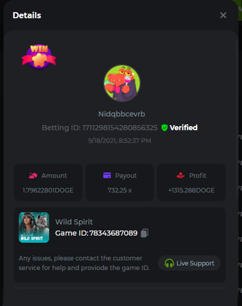 bassabar Posted September 18, 2021 Share Posted September 18, 2021 Slotname: Wild Spirit Multiplier: 53.85x Betid: 1711013561450910336 Link to comment Share on other sites More sharing options...
