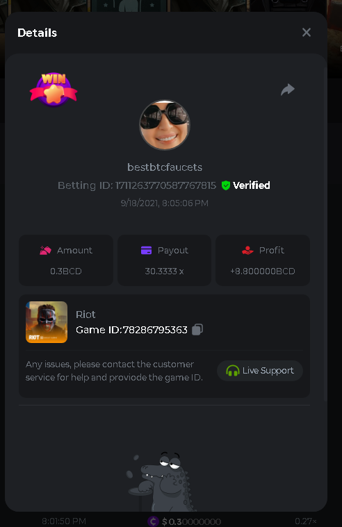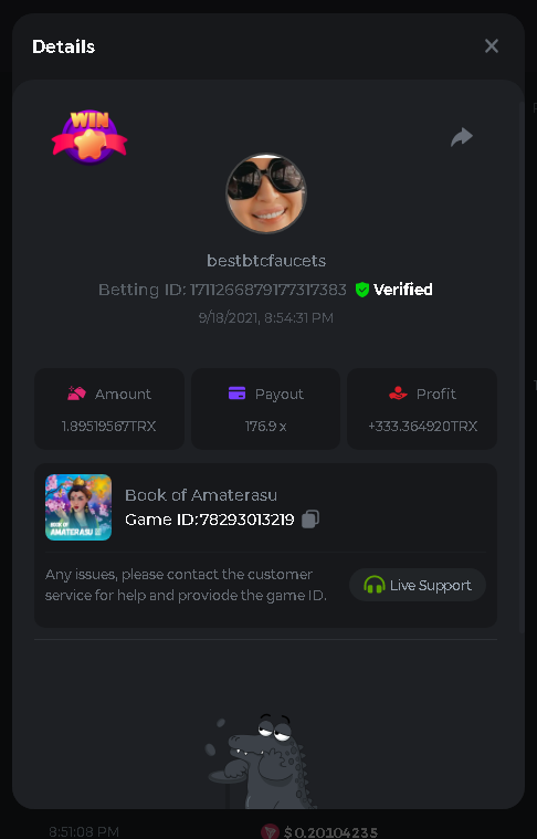 merinaina Posted September 19, 2021 Share Posted September 19, 2021 Betting ID: 1711301553471201031 slot= Gryphon's castle multiplier: 603.5x wowww my seconed entry...... Link to comment Share on other sites More sharing options...