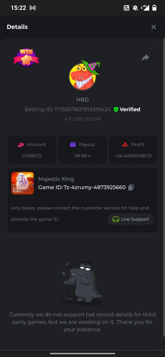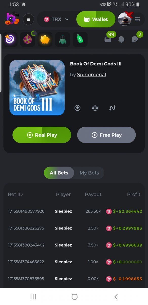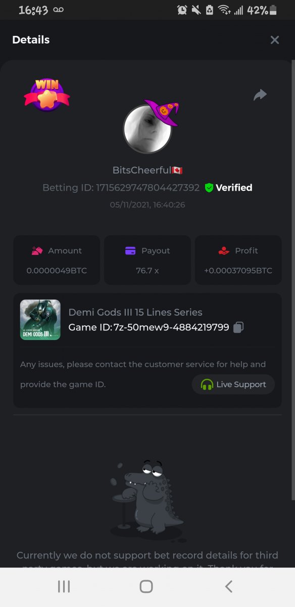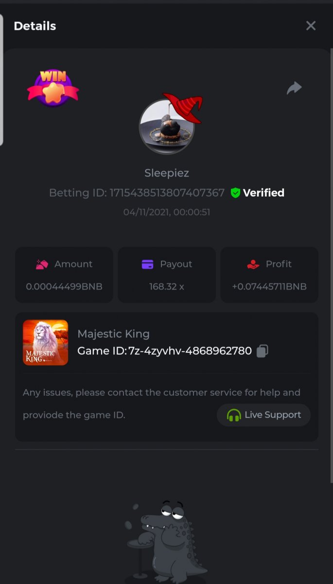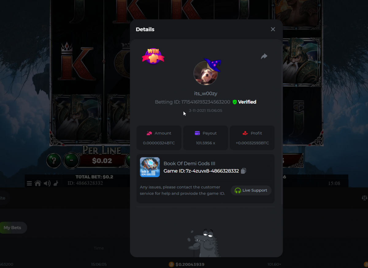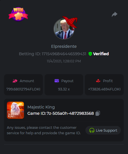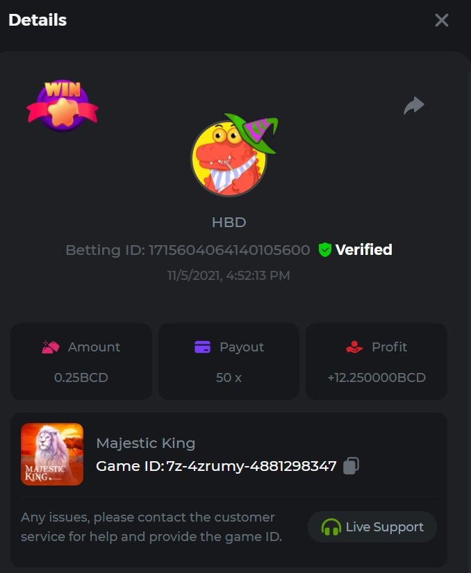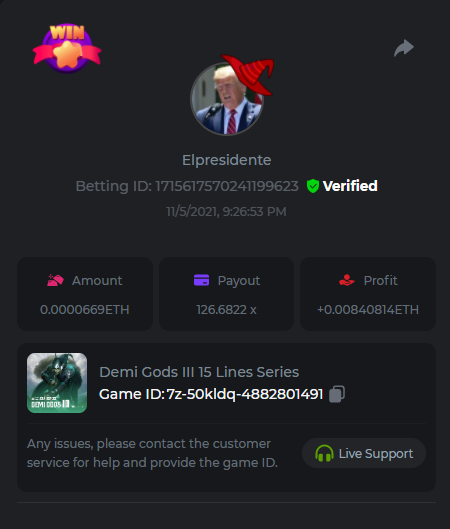 _Joe Posted November 2, 2021 Share Posted November 2, 2021 Starts: 2, November 20:00 GMTEnds: 9, November 20:00 GMT Welcome back, this week we have a Spinomenal slot event, with a huge $4,000 prize pool! The event is simple - get the highest possible multiplier you can on the slots listed below! The top 3 highest multipliers posted for each slot will win one of the ranked prizes! To sweeten the treats a little further, anyone that completes the side bounty will receive a share of $400(details further down). Eligible Games Get the highest multiplier on any (or all) of the 4 slots below Book of Demi Gods III Majestic King Joker Win Demi Gods III Each player can only win 1 prize per slot, if a player submits more than 1 entry for the same slot, only the highest multiplier will count. Can I win a prize for each of the slots? YES - you can win one prize on each of the 4 slots listed + the bounty prize. Minimum VIP Tier Must be VIP08 or higher in order to enter this challenge. Minimum Bet Size Book of Demi Gods III - $0.20 Majestic King- $0.25 Joker Win - $0.20 Demi Gods III - $0.30 Eligible Coins All coins are eligible (excluding JB) Available Prizes Book of Demi Gods III - 1st place $500 2nd place.$250 3rd place$150 Majestic King - 1st place$500 2nd place$250 3rd place$150 Joker Win - 1st place -$500 2nd place$250 3rd place$150 Demi Gods III - 1st place$500 2nd place$250 3rd place$150 50x BOUNTY - Post a bet that shows EXACTLY 50x payout on any of the 4 slots within the timeframe of this challenge and receive a share of a $400! If nobody gets exactly 50x the person/s closest to 50x will win this bounty! How to Enter To enter, copy the bet ID of the bet you'd like to submit Once you've copied it, post it as a reply to this thread like so: Betting ID: 1708854428417660423 In the same post, upload a screenshot of your win by clicking the game ID WITH VIEW IN USD mode ENABLED (accessible at the bottom of dropdown menu for your wallet up top. This way, we can ensure that your bet indeed met the minimum requirement at the time of placing it: Example post - Betting ID: 1715345879721985408 Good Luck Everyone! Link to comment Share on other sites More sharing options...