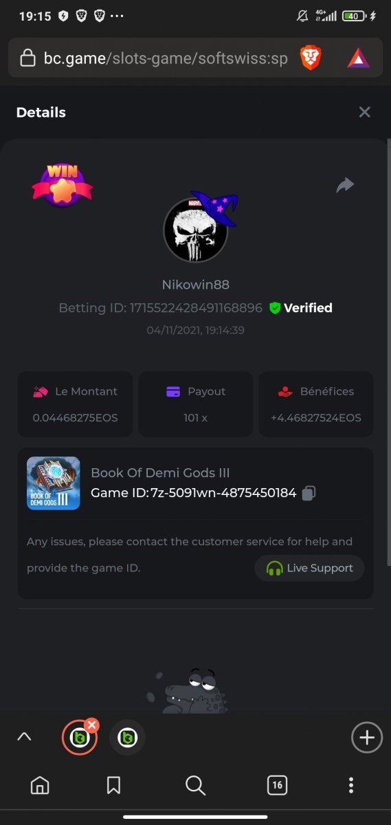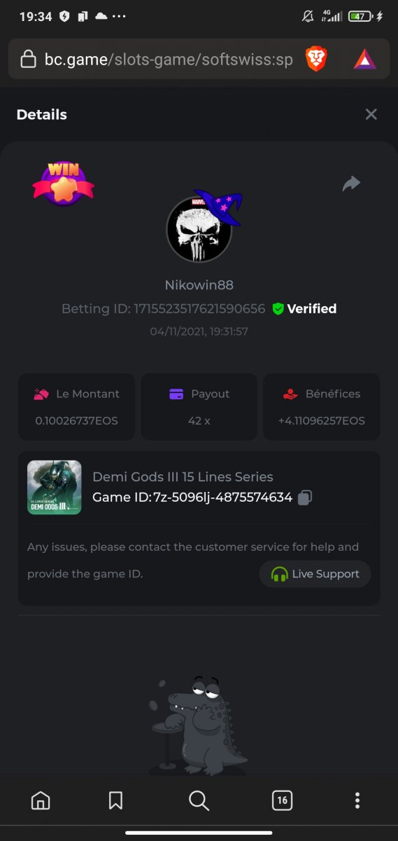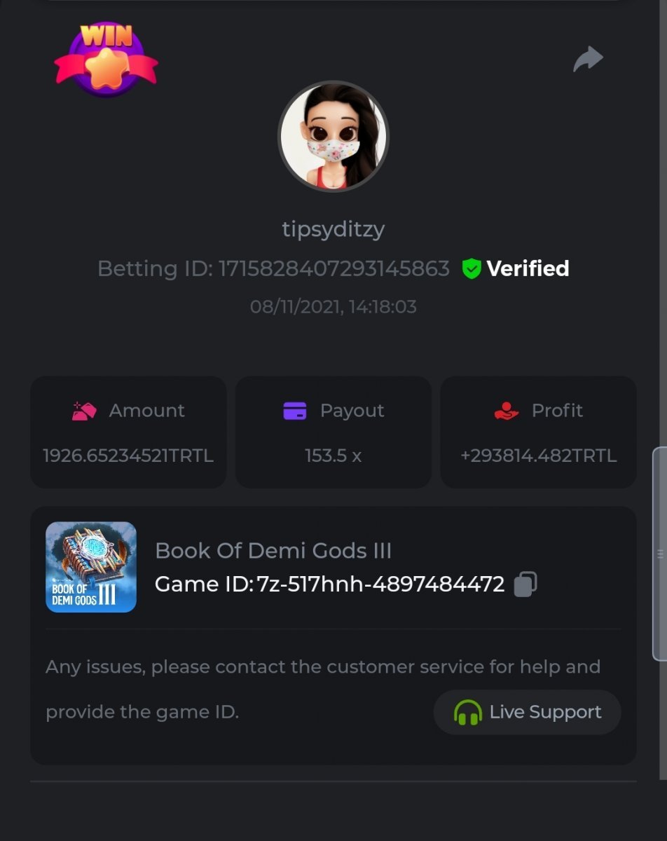 FkArndFndOut Posted November 4, 2021 Share Posted November 4, 2021 JOKER WIN Betting ID: 1715467735949794176 X108.5 MAJESTIC KING X50 BONUS WIN!! Betting ID: 1715475231917088896 X50 Betting ID: 1715476720723763840 X 84.6 BOOK OF DEMI GODS III X50 BONUS WIN X2 Betting ID: 1715571828425286528 X50 Betting ID: 1715572195036421760 X152.5 DEMI GODS III Betting ID: 1715629747804427392 X76.7 Link to comment Share on other sites More sharing options...