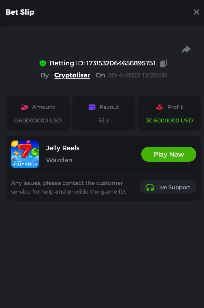 MeninaDtrap Posted May 1, 2022 Share Posted May 1, 2022 https://bc.game/sd/?sd=10JM7STT2U153N 92x $0.10 bet was the last spin so I got lucky just then https://bc.game/sd/?sd=10JM80LJ60QNTF 41.6x $0.20 bet https://bc.game/sd/?sd=10JM8GM5EM4T1V 58x $0.40 bet Link to comment Share on other sites More sharing options...