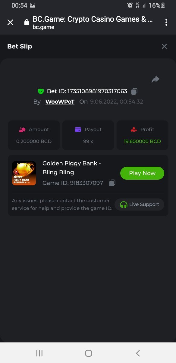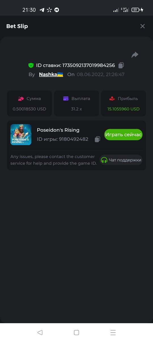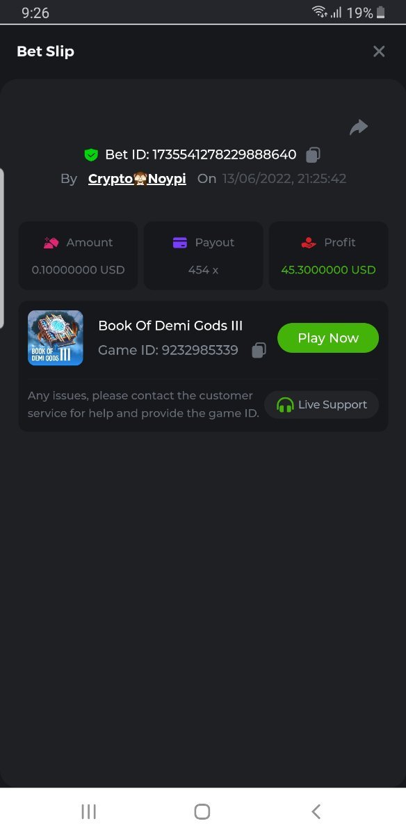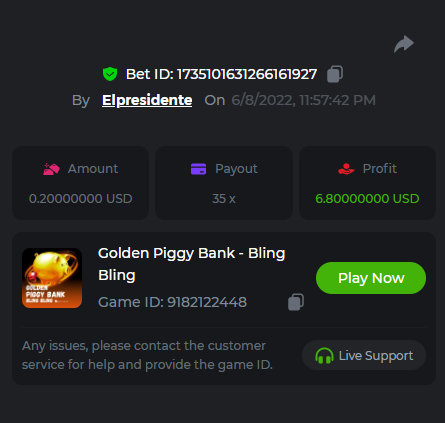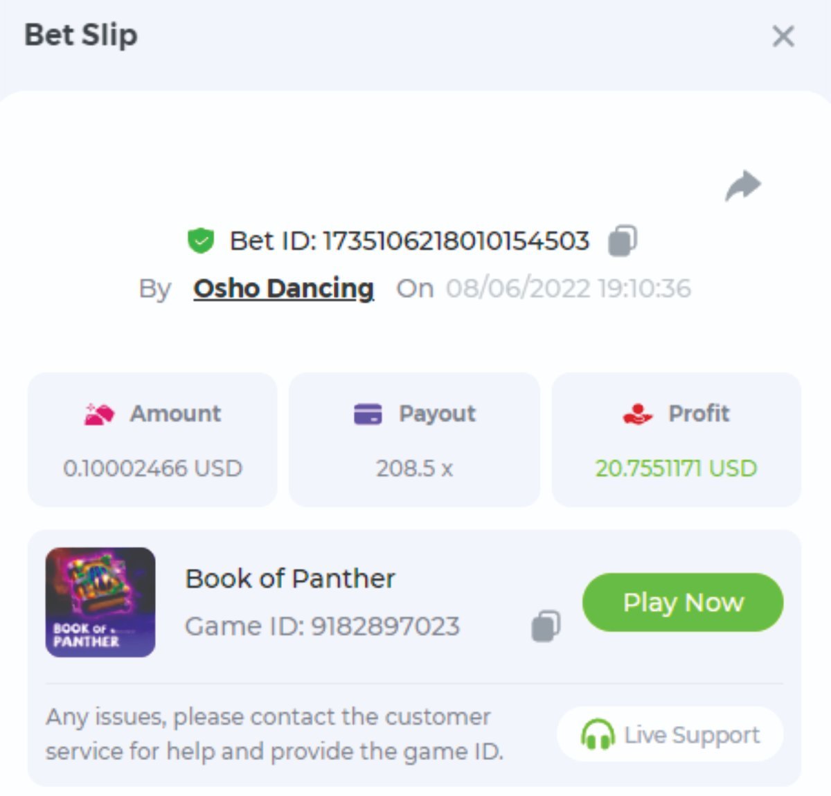 Event Team Niobium Posted June 8, 2022 Event Team Share Posted June 8, 2022 Hello Dear VIPs! Welcome back for this week's battle, we're hosting another Spinomenal event with a prize pool of up to $4,000! Participants need to hit the highest multipliers on six selected slots and payouts will be added together to rank. In addition, those who complete the bonus will receive 10% of the prize equally. Don't forget that luck is what happens when preparation meets opportunity. (details further down). Eligible Games Win the highest multiplier on the Spinomenal slots listed below Poseidon's Rising Book Of Demi Gods III Kupala Book Of Panther Golden Piggy Bank - Bling Bling Savannah's Queen The highest multiplier reached in each game will be added together and counted as total points. Bonus buys are allowed. If the player submits multiple winning entries for the same game, the entry with the highest multiplier will be valid. Minimum VIP Tier Must be VIP04 or higher in order to enter this event. Minimum Payout Minimum payout to qualify is 10x (in any game) for a valid entry. Minimum Bet Size Poseidon's Rising - $0.50 Book Of Demi Gods III - $0.10 Kupala - $0.10 Book Of Panther - $0.10 Golden Piggy Bank - Bling Bling - $0.20 Savannah's Queen - $0.25 Eligible Coins All cryptocurrencies are eligible (excepting JB, and BCL). Free Play Mode is not valid for this event. Prize Pool & Reward Breakdown The winners will win a share of the prize pool based on the detailed ranking below. Anyone who completes the side bounty will receive a share of a 10% of the prize pool. BOUNTY - Share a bet that shows exactly 51x payout on any of the six games within the timeframe of this Battle and receive a share of 10% of the prize pool! If nobody wins exactly payouts the player/s closest to the payout will win this bounty! Original rules apply with min bet, minimum payout & VIP. How to Enter Access the game to select your Bet ID, click on the Share icon (↷) and then Copy link. Return to the topic, paste the link in the field "Reply to this topic..." E.g.: https://bc.game/sd/?sd=10M8GKHQNHVUOJ Each eligible entry must have the Bet Slip URL, the non-inclusion of the link will disqualify participation in the event. In the same post, upload a screenshot of your win by clicking the game ID WITH VIEW IN USD mode ENABLED (accessible at the bottom of dropdown menu for your wallet up top, and Submit Reply. Done! This way, we can ensure that your bet indeed met the minimum requirement at the time of placing it: Example post - Link: https://bc.game/sd/?sd=10M8GKHQNHVUOJ Good luck everyone! Link to comment Share on other sites More sharing options...